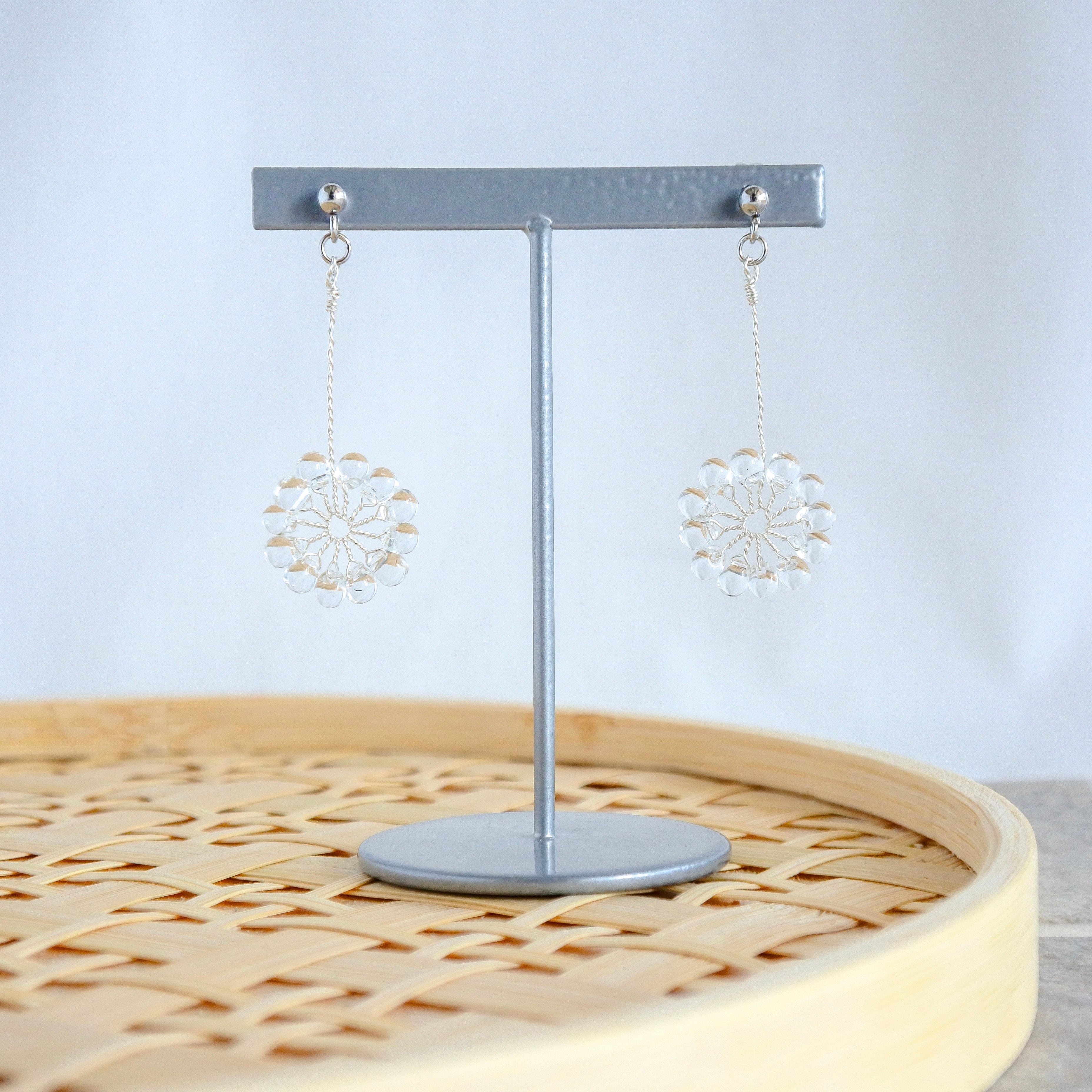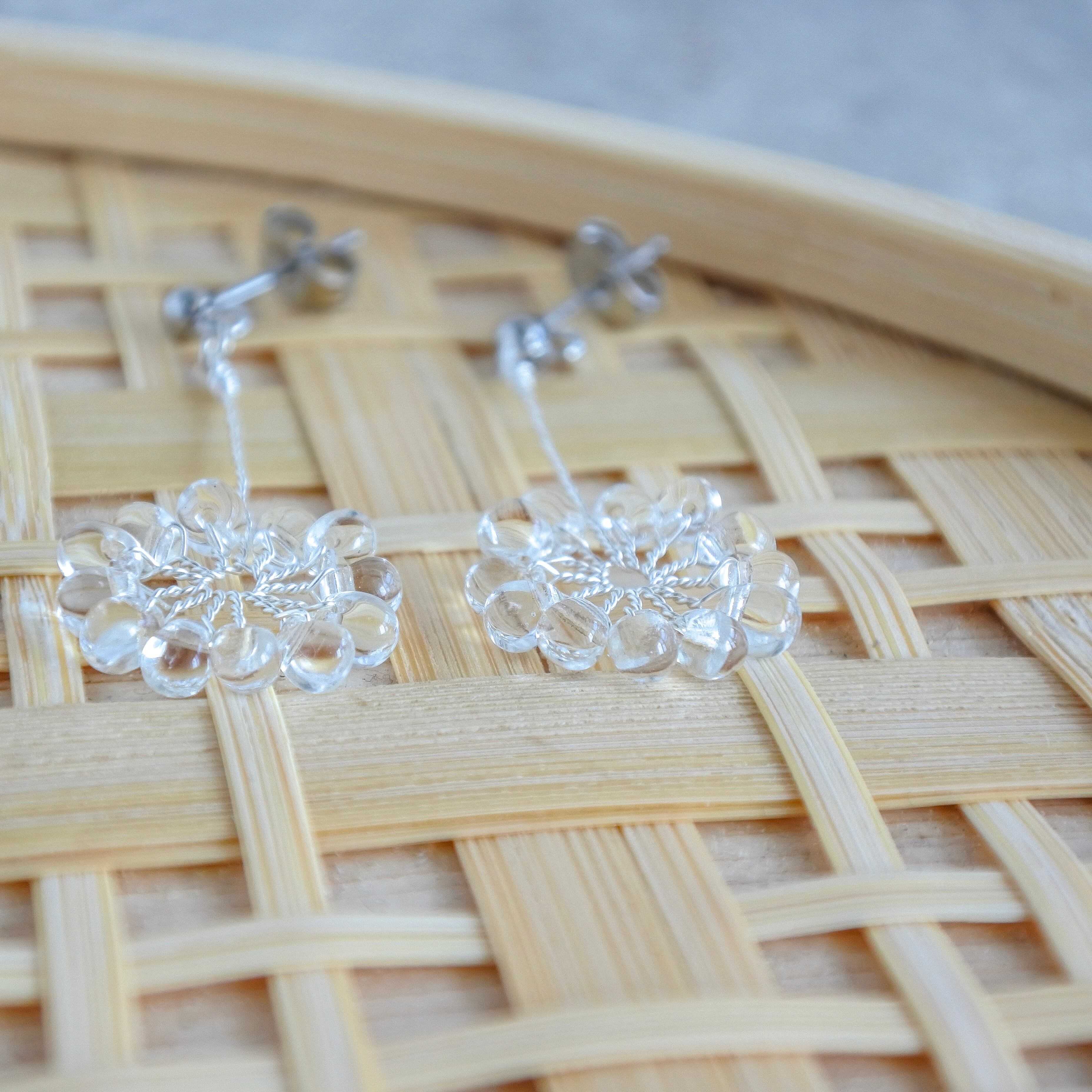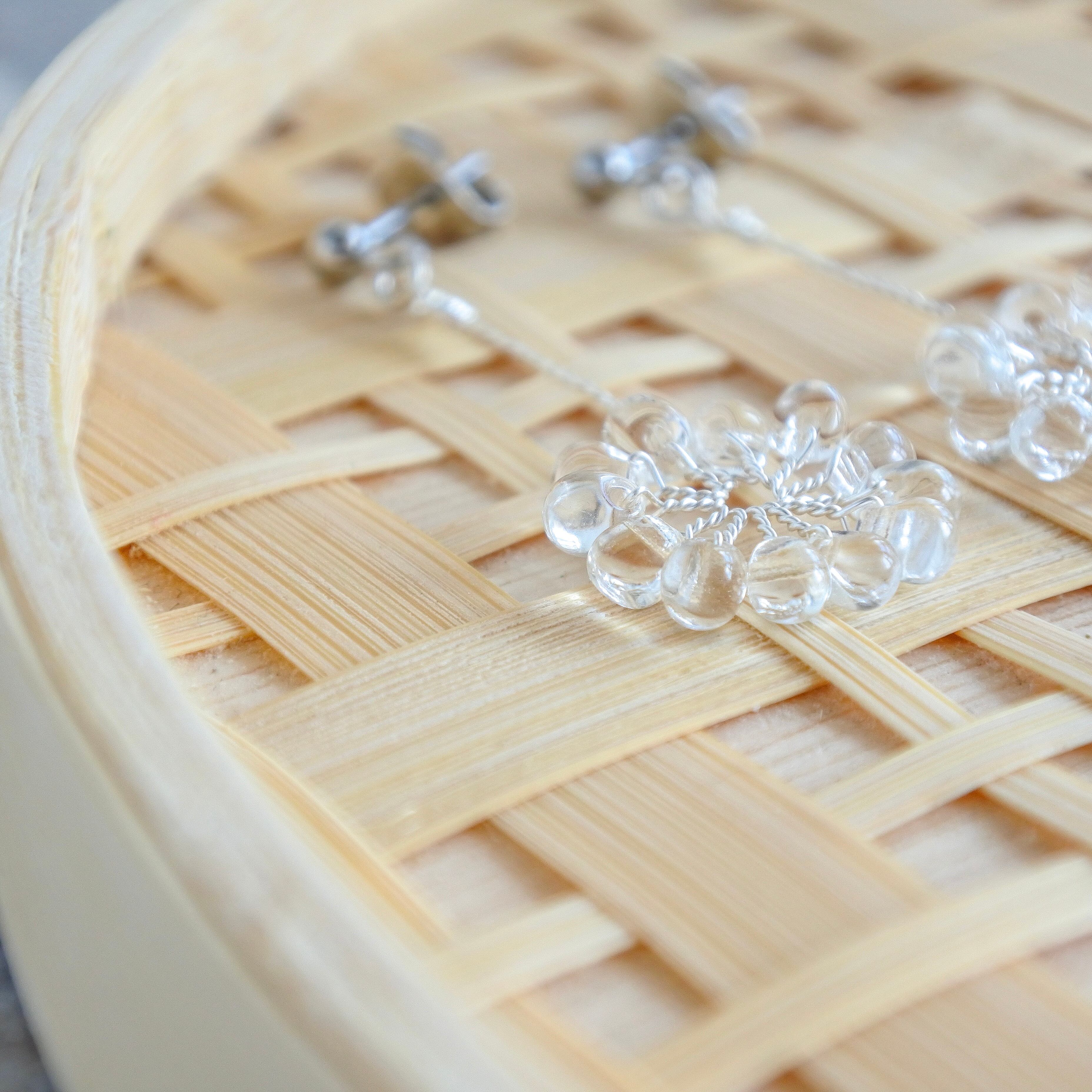 ガラスのドロップビーズはつやつやで涼やか。