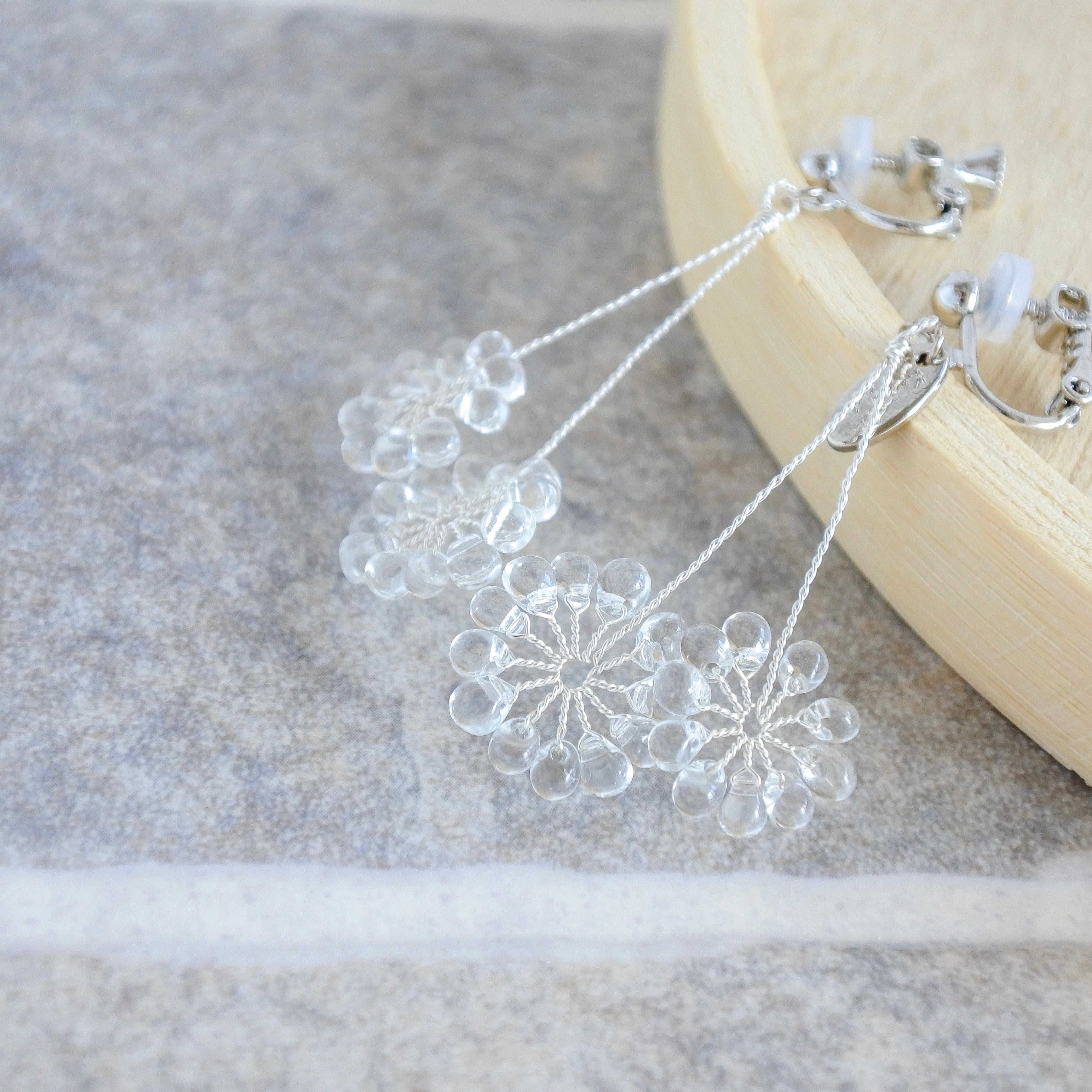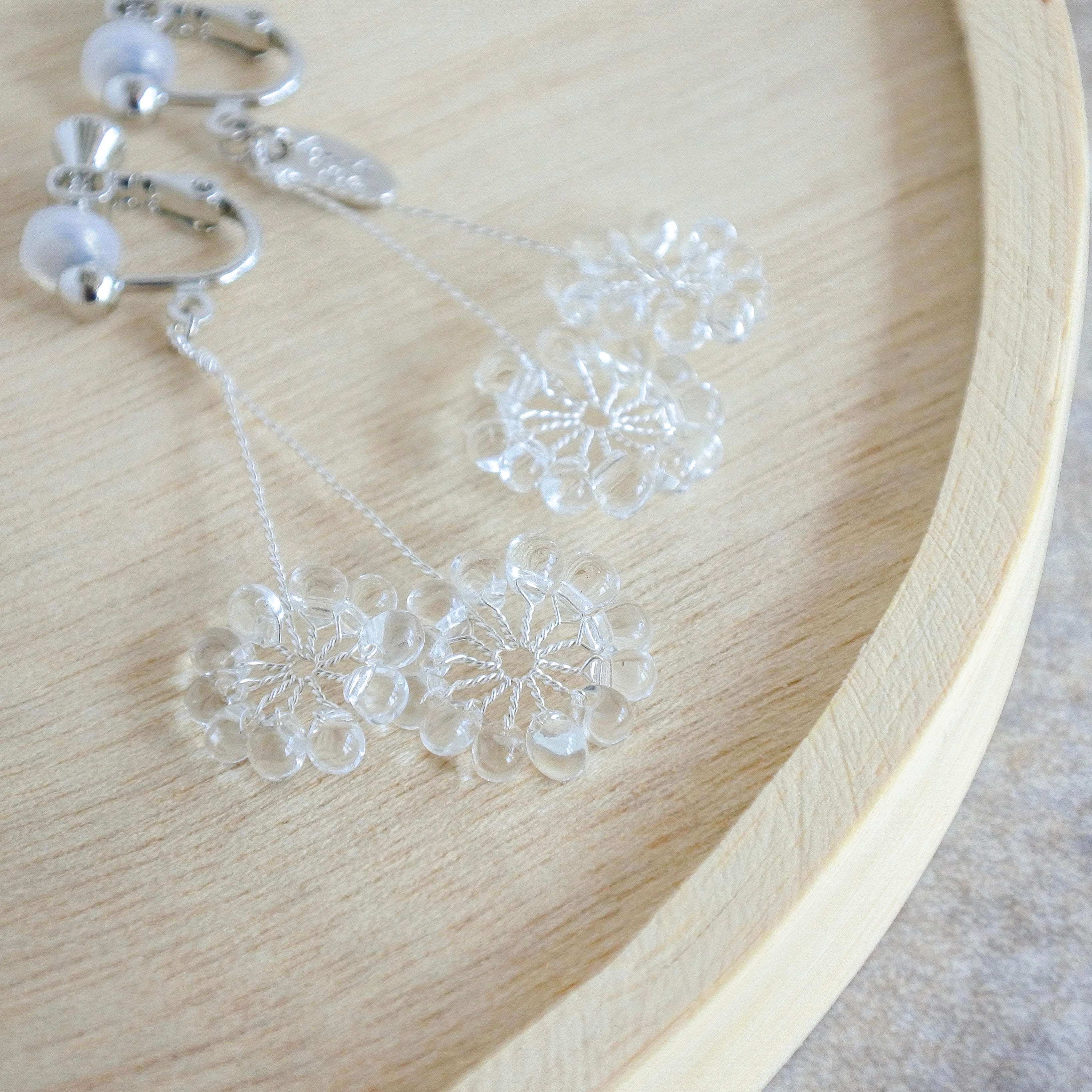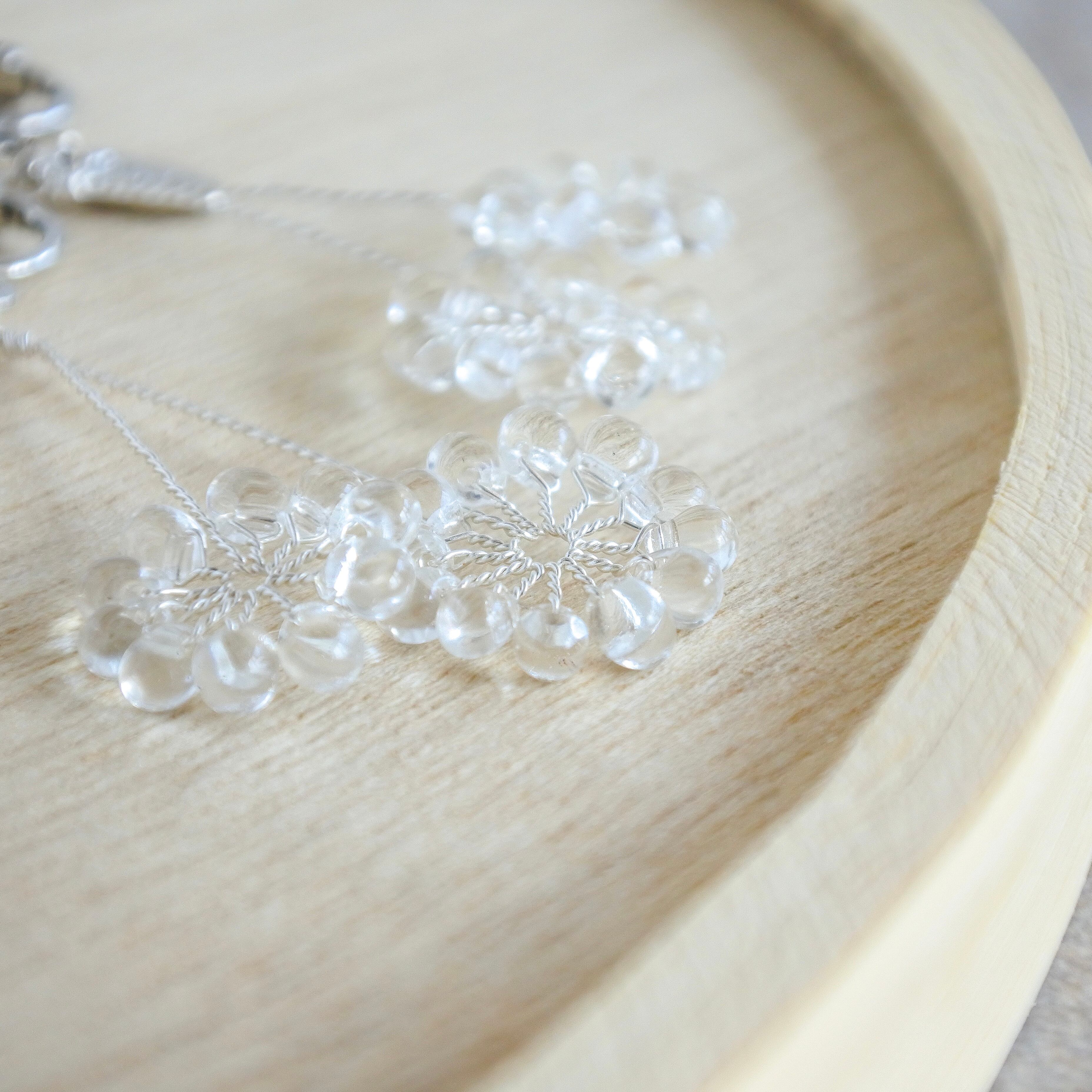 ガラスのドロップビーズはつやつやで涼やか。