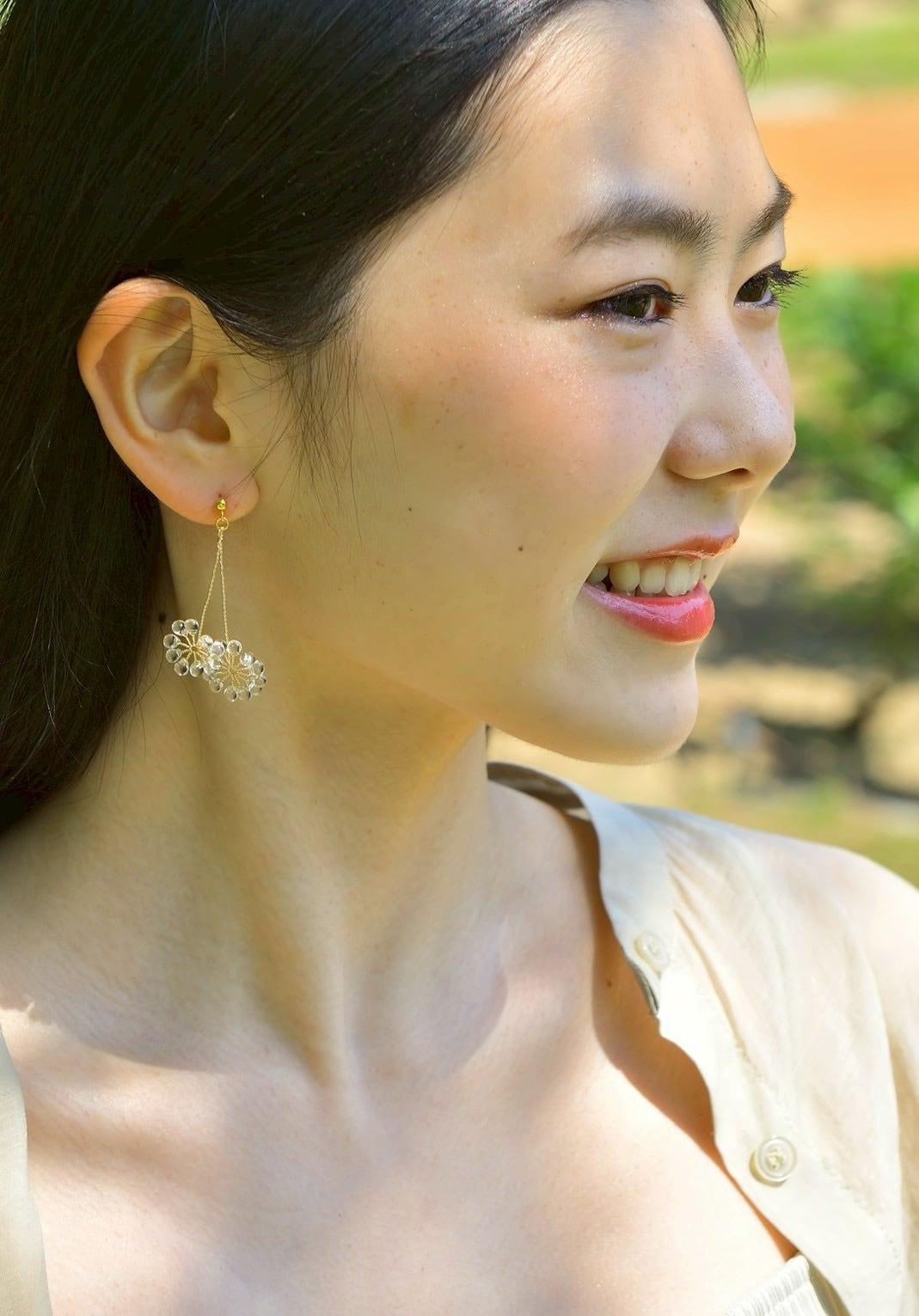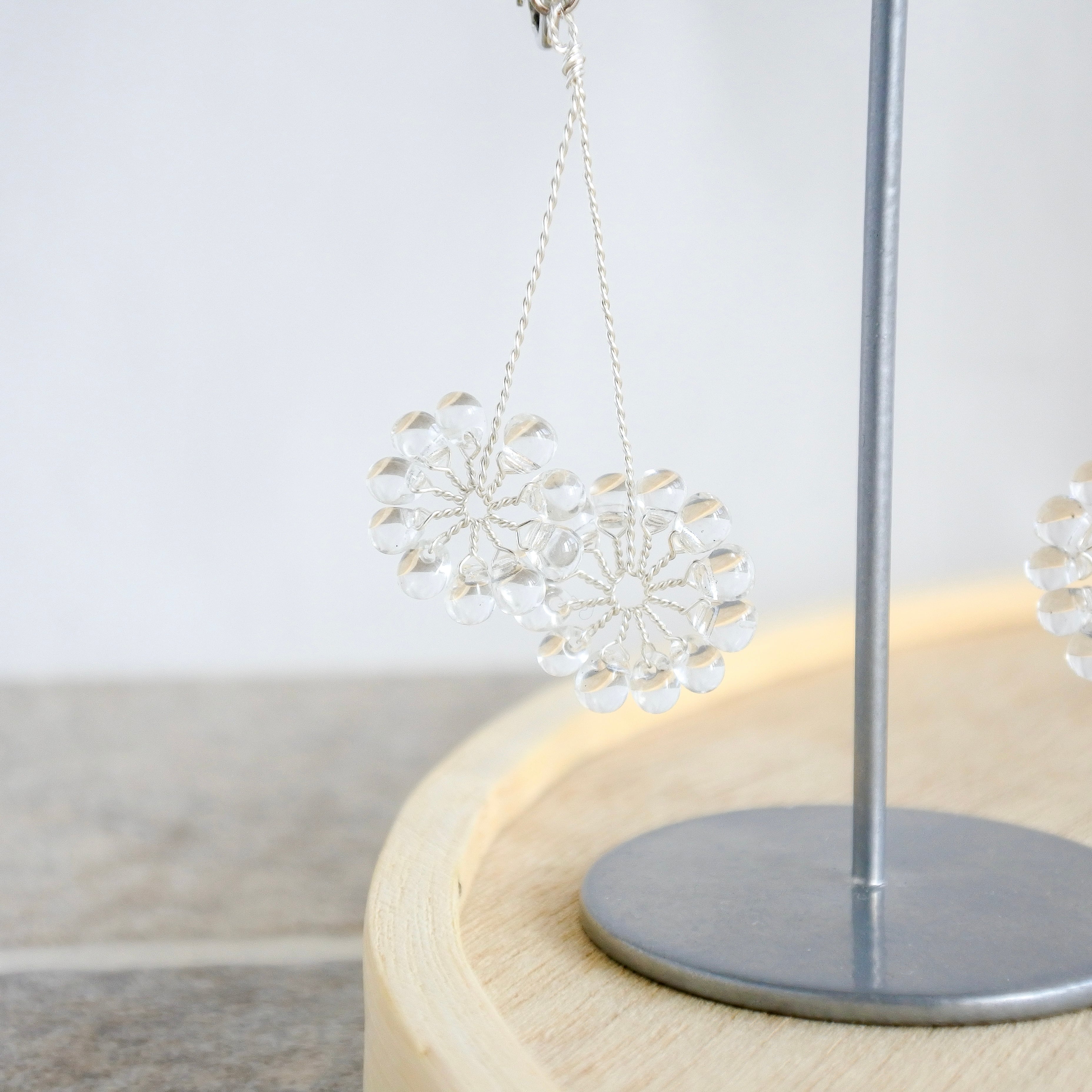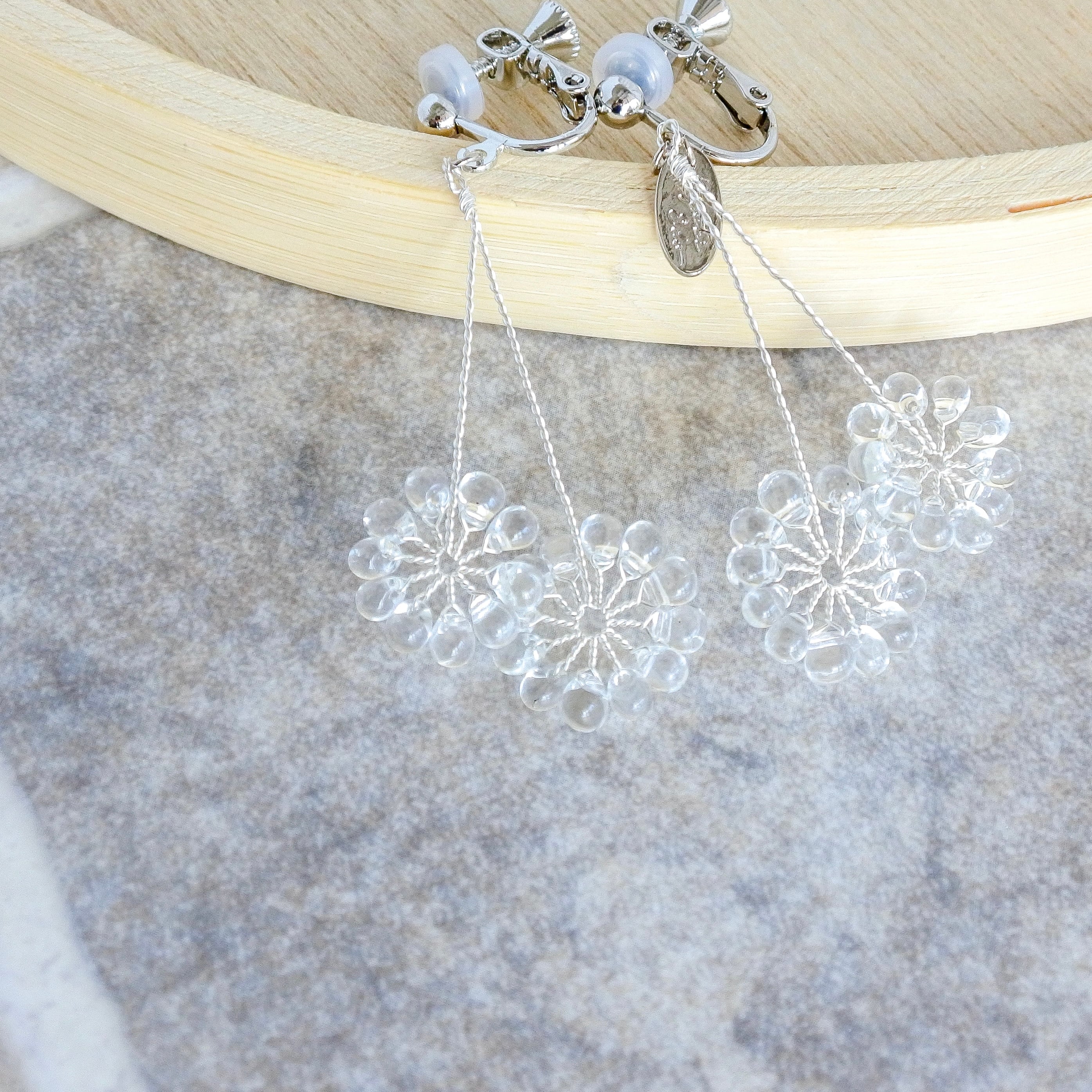 ガラスのドロップビーズはつやつやで涼やか。