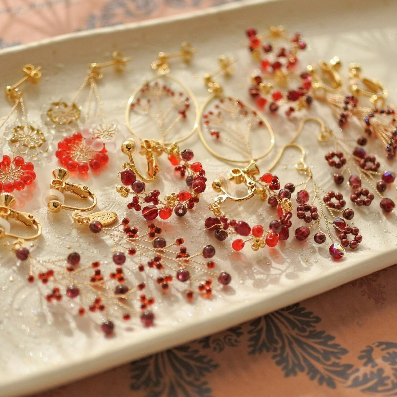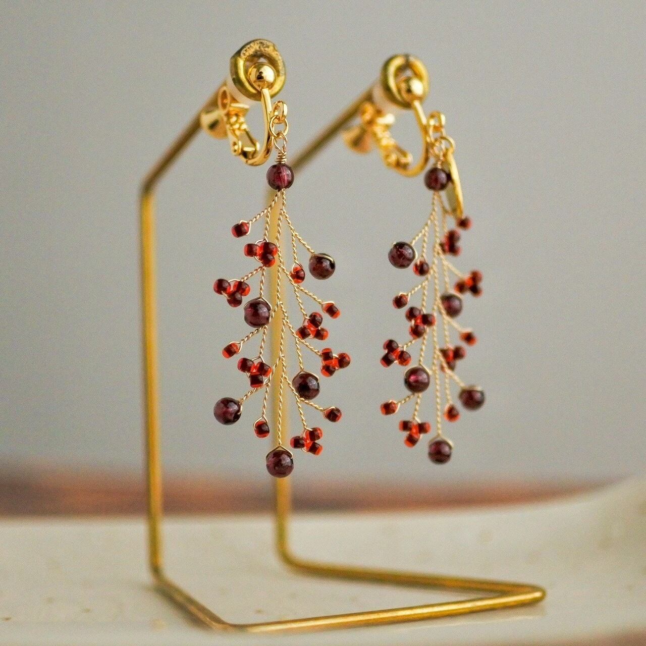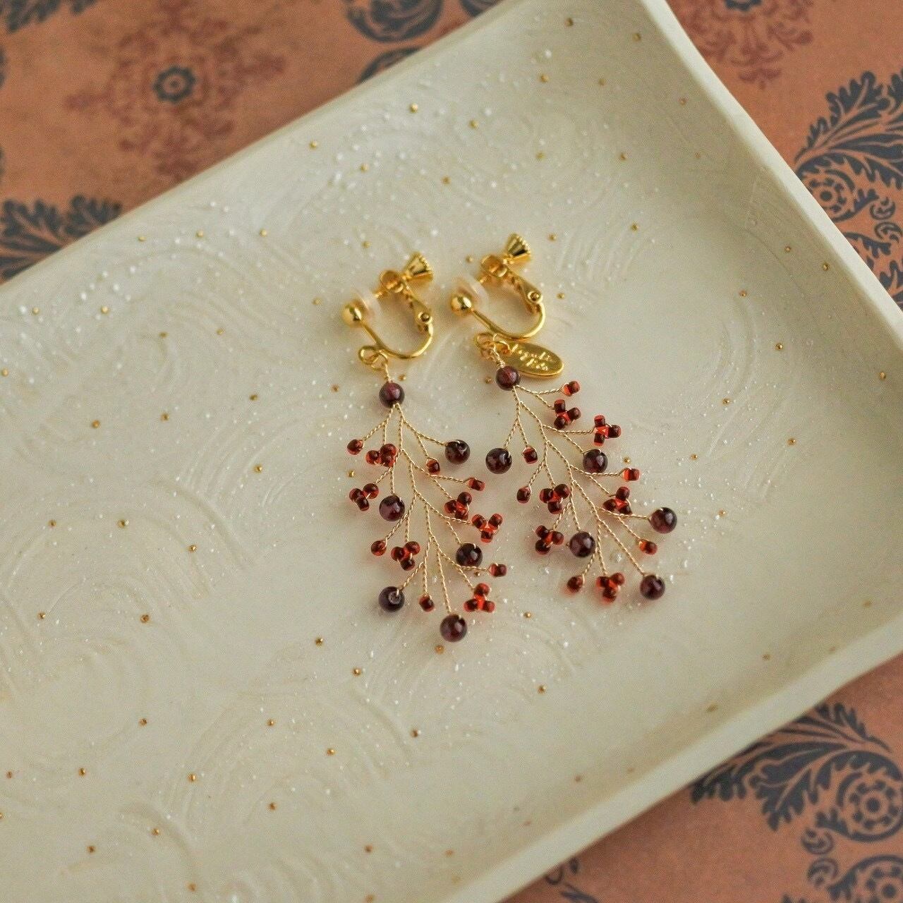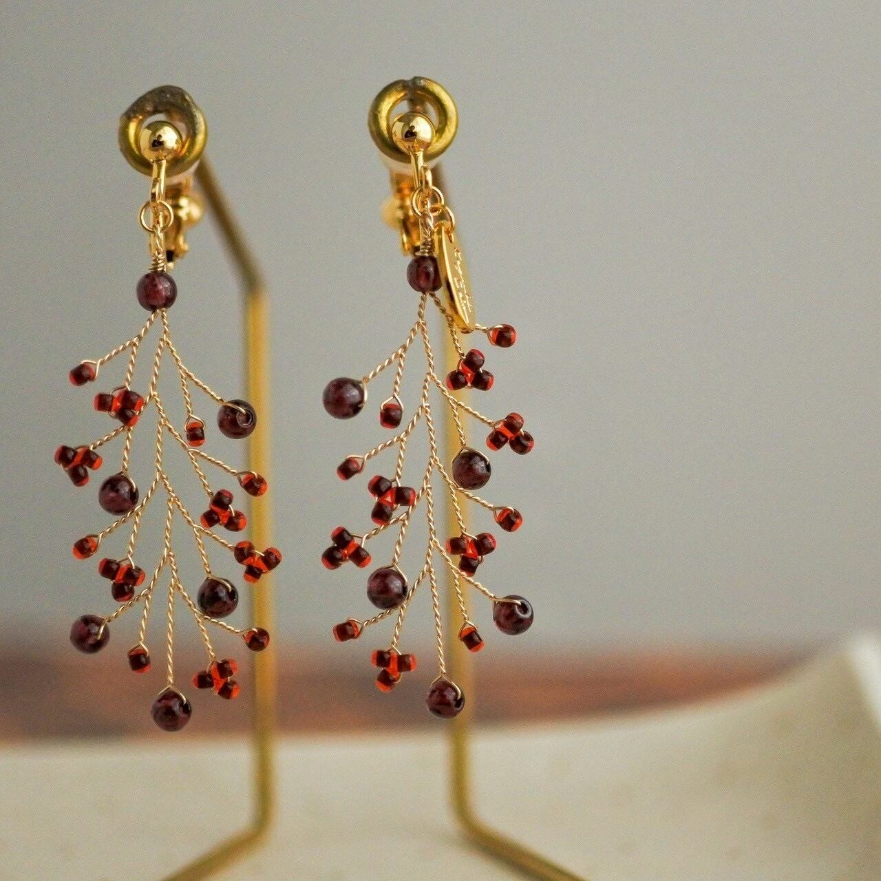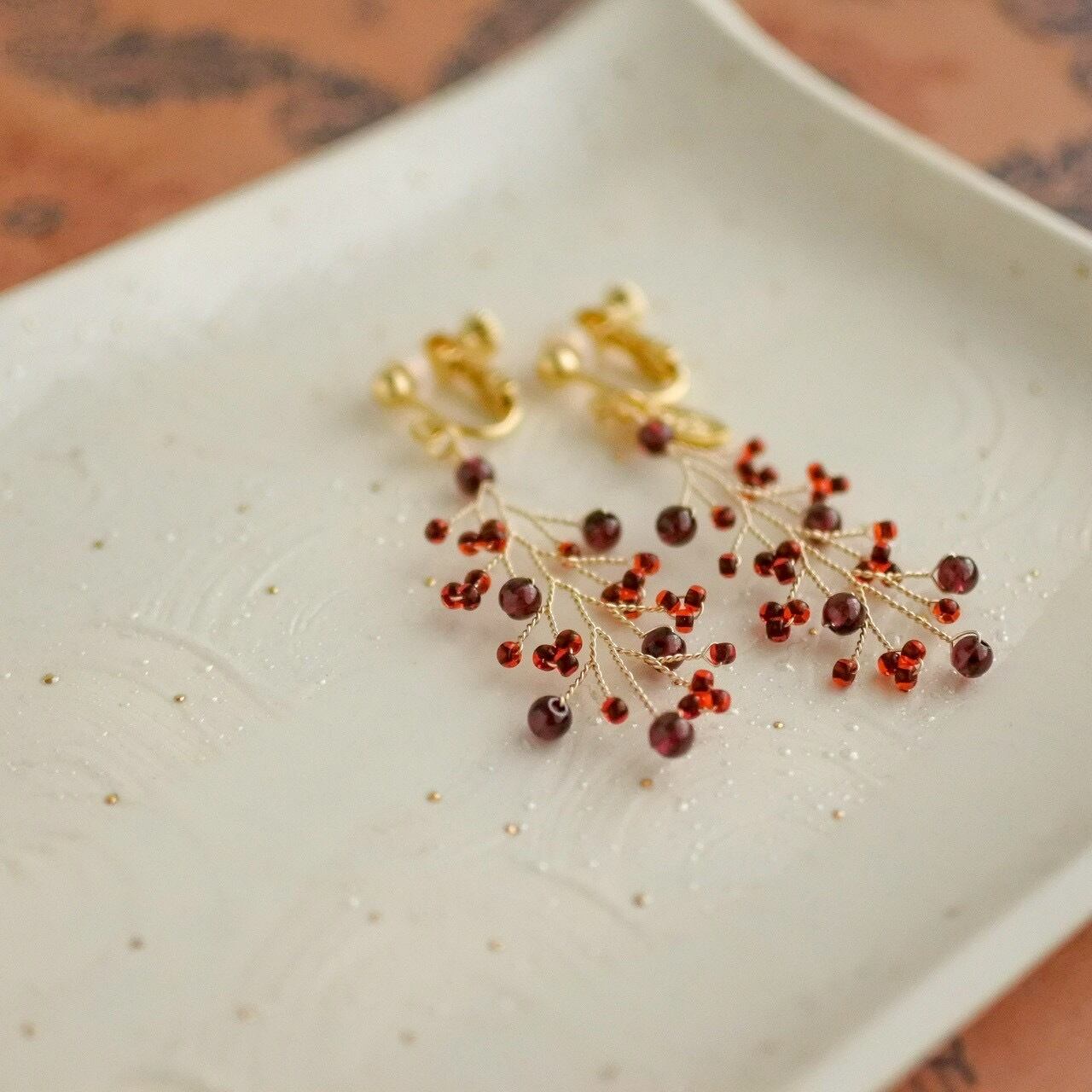 1,2月限定カラー「ざくろシリーズ」ひとつめの花 小枝耳飾り ワイヤーアクセサリー