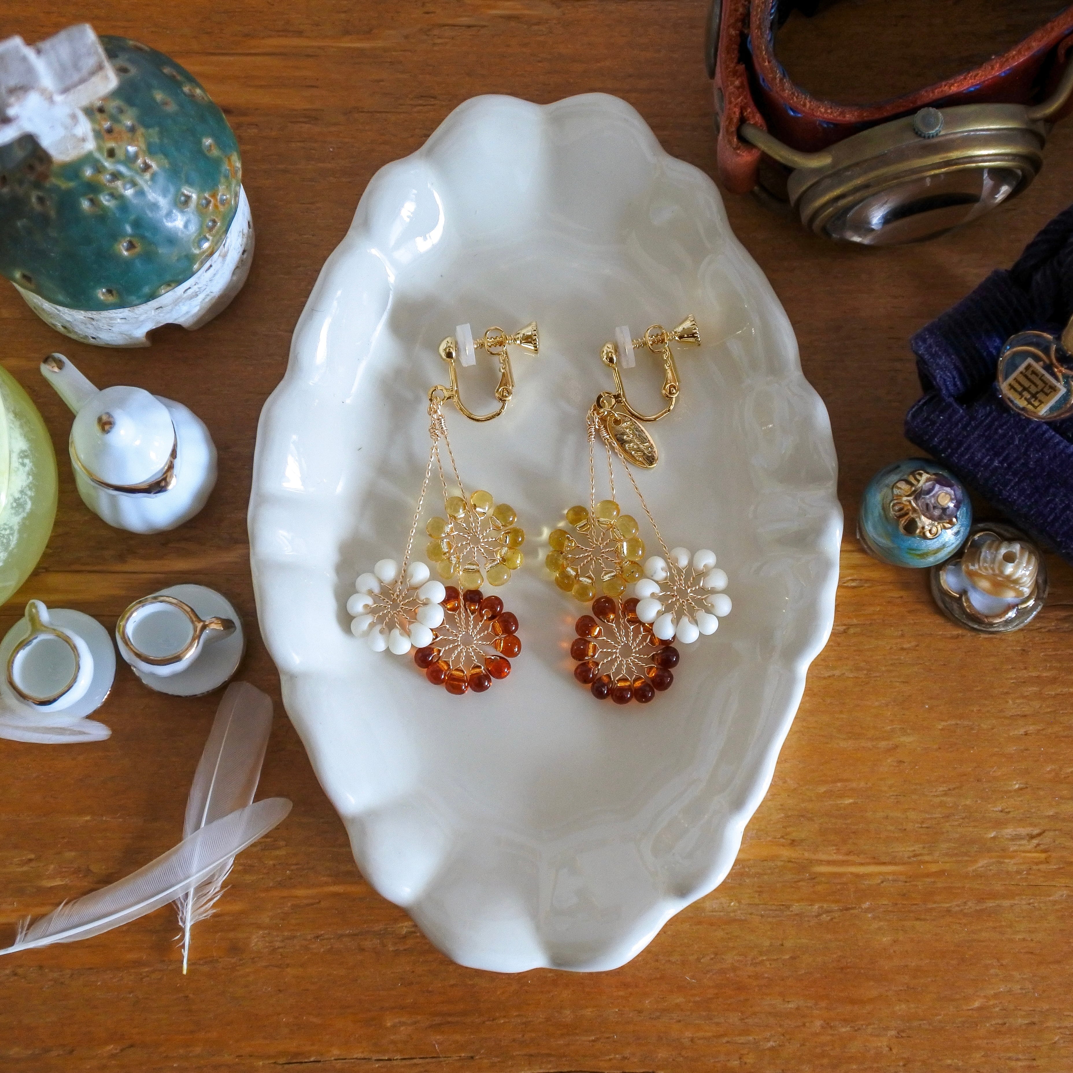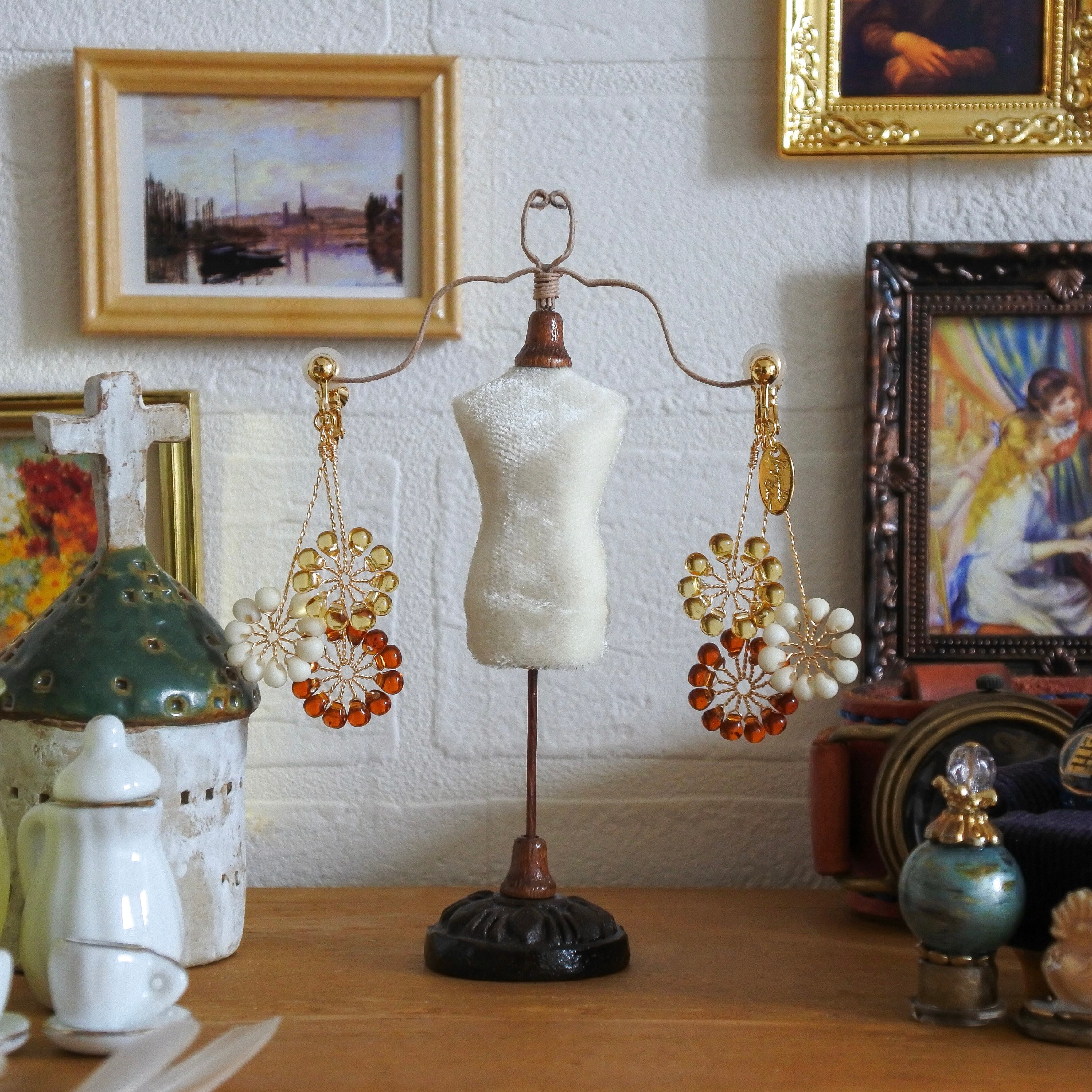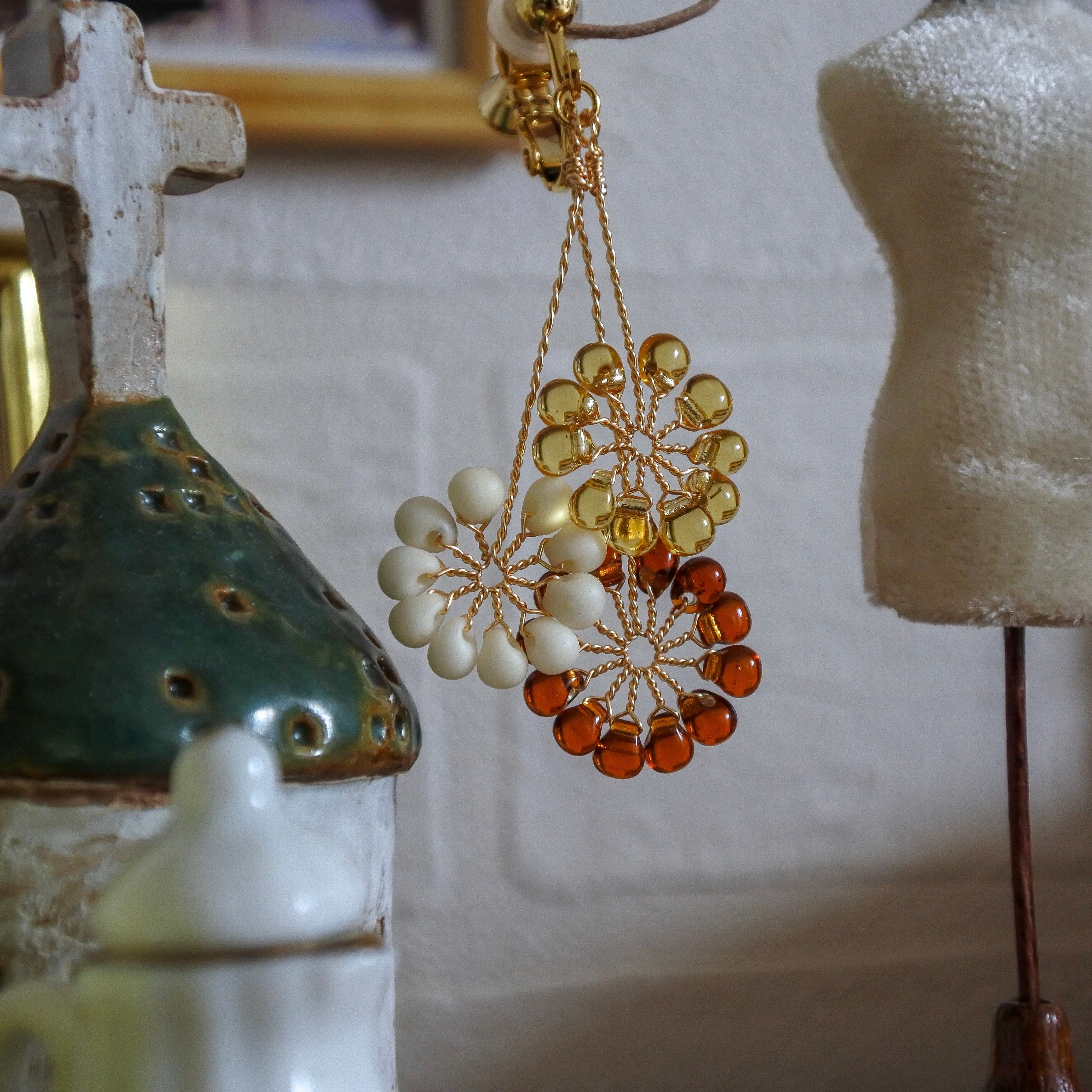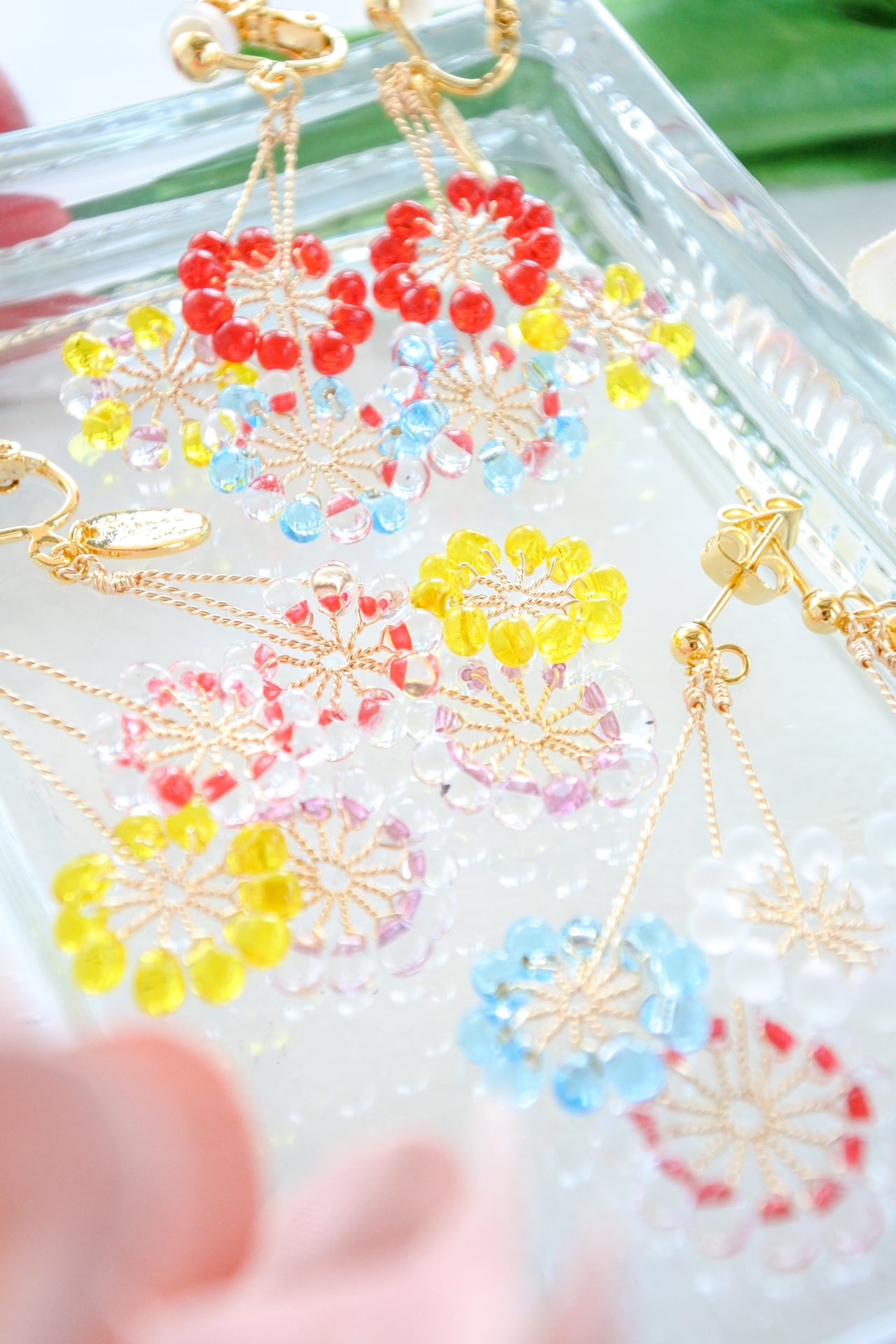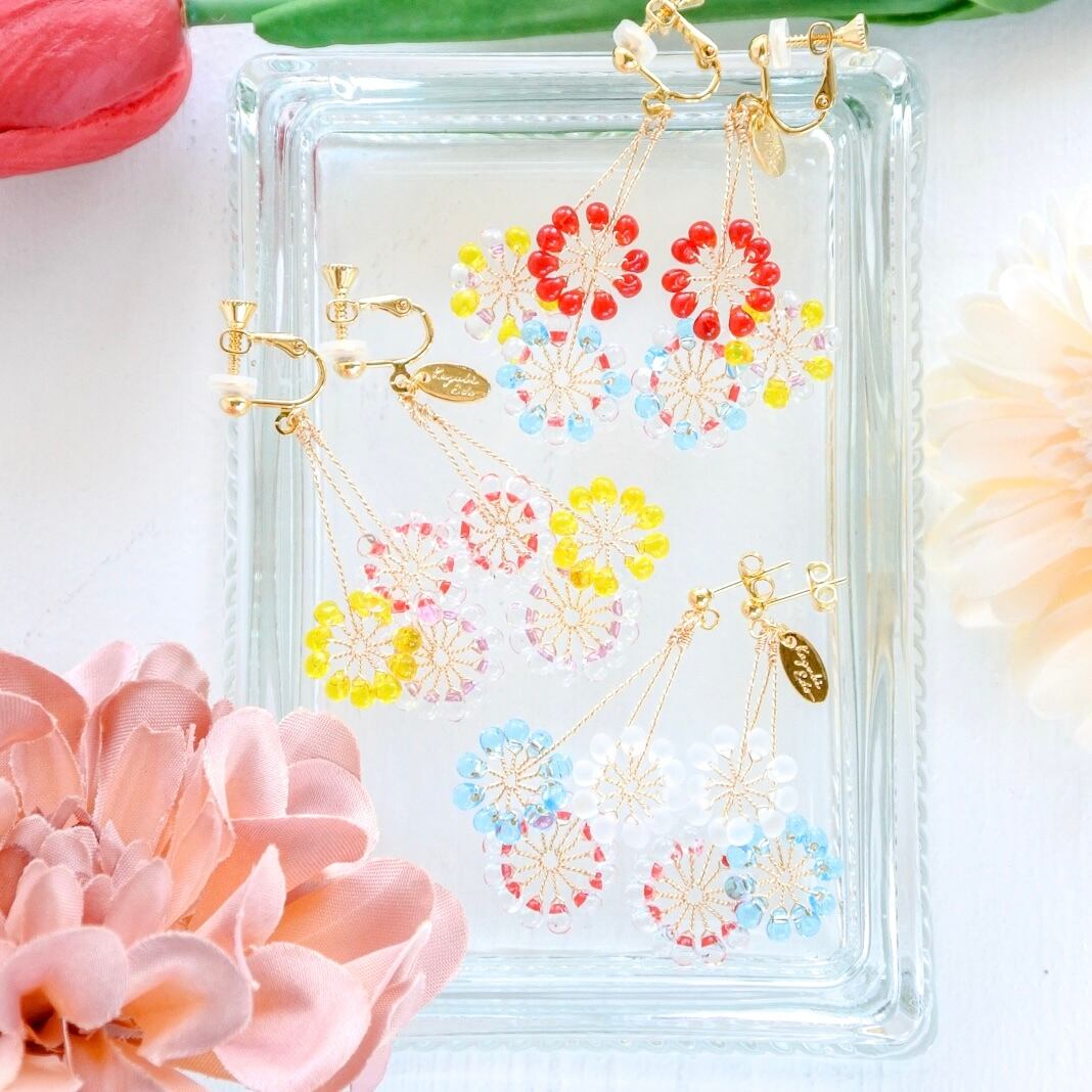 ガラスのドロップビーズはつやつやで涼やか。