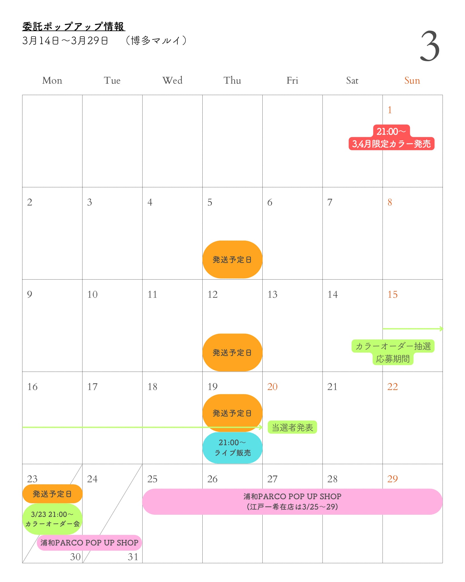 3月のスケジュール