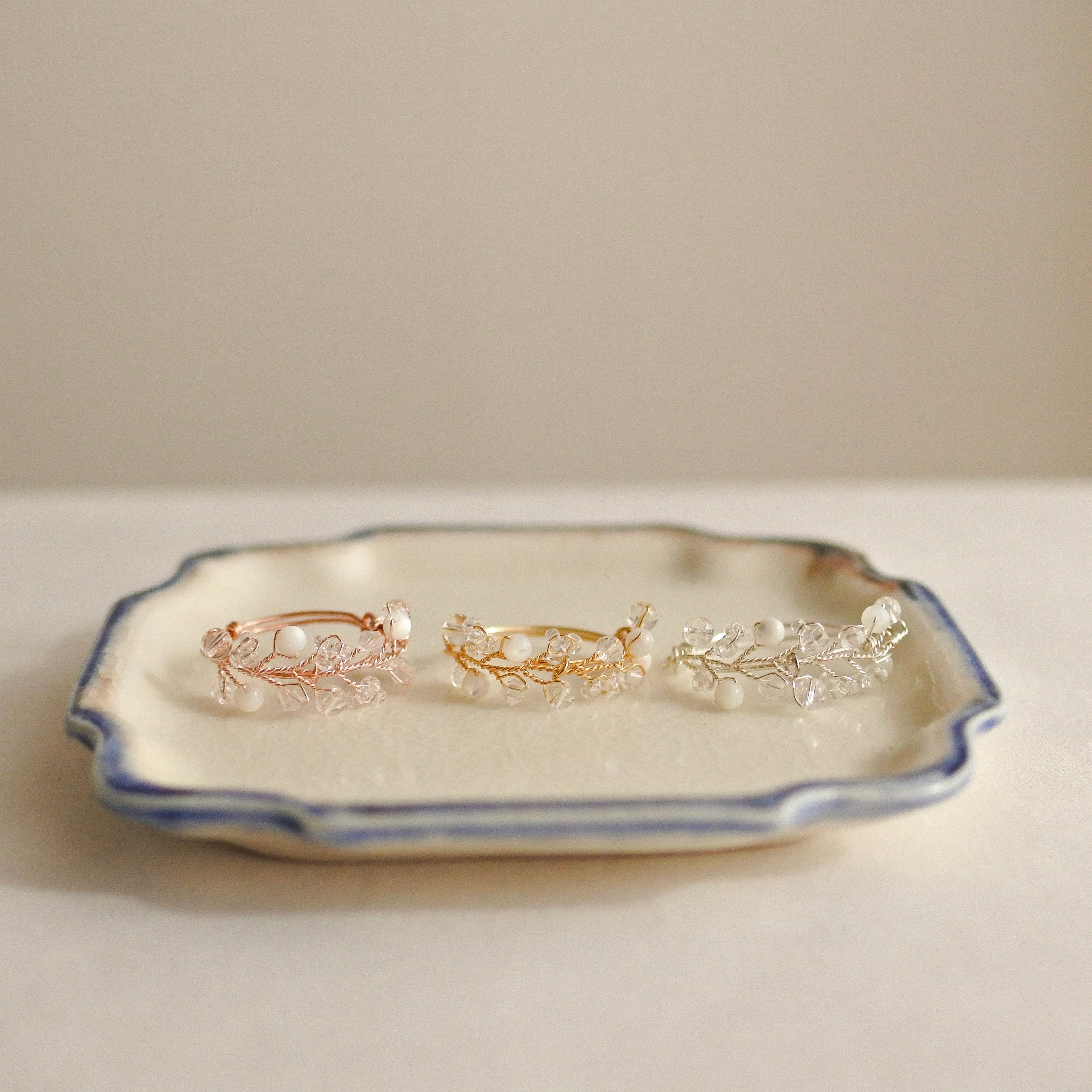 針金装身具には、錆びに強く劣化の少ない工芸用の針金(アーティスティックワイヤー)を使用しています。
