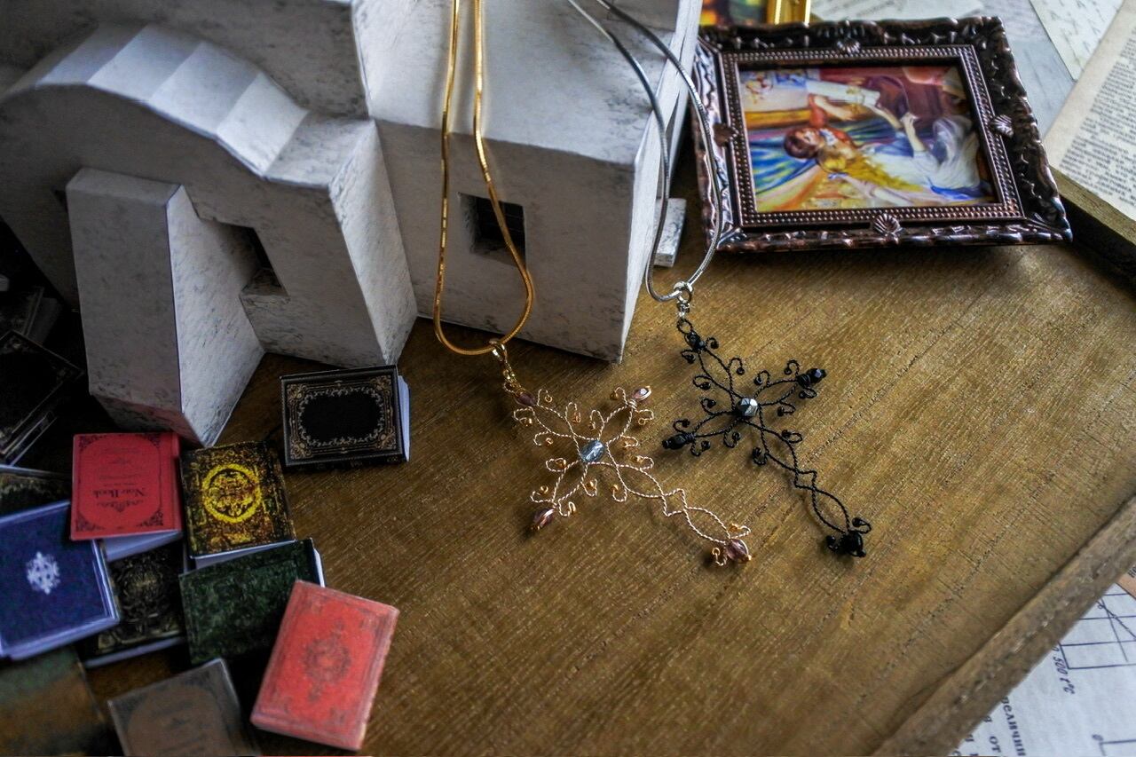 ネックレスはスネークチェーンでクロスモチーフに引っかかる心配はありません!!