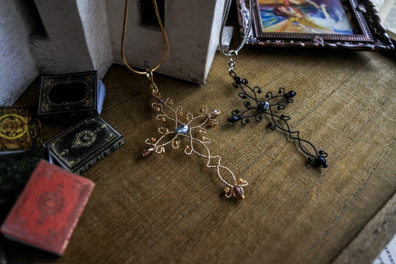 ネックレスはスネークチェーンでクロスモチーフに引っかかる心配はありません!!
