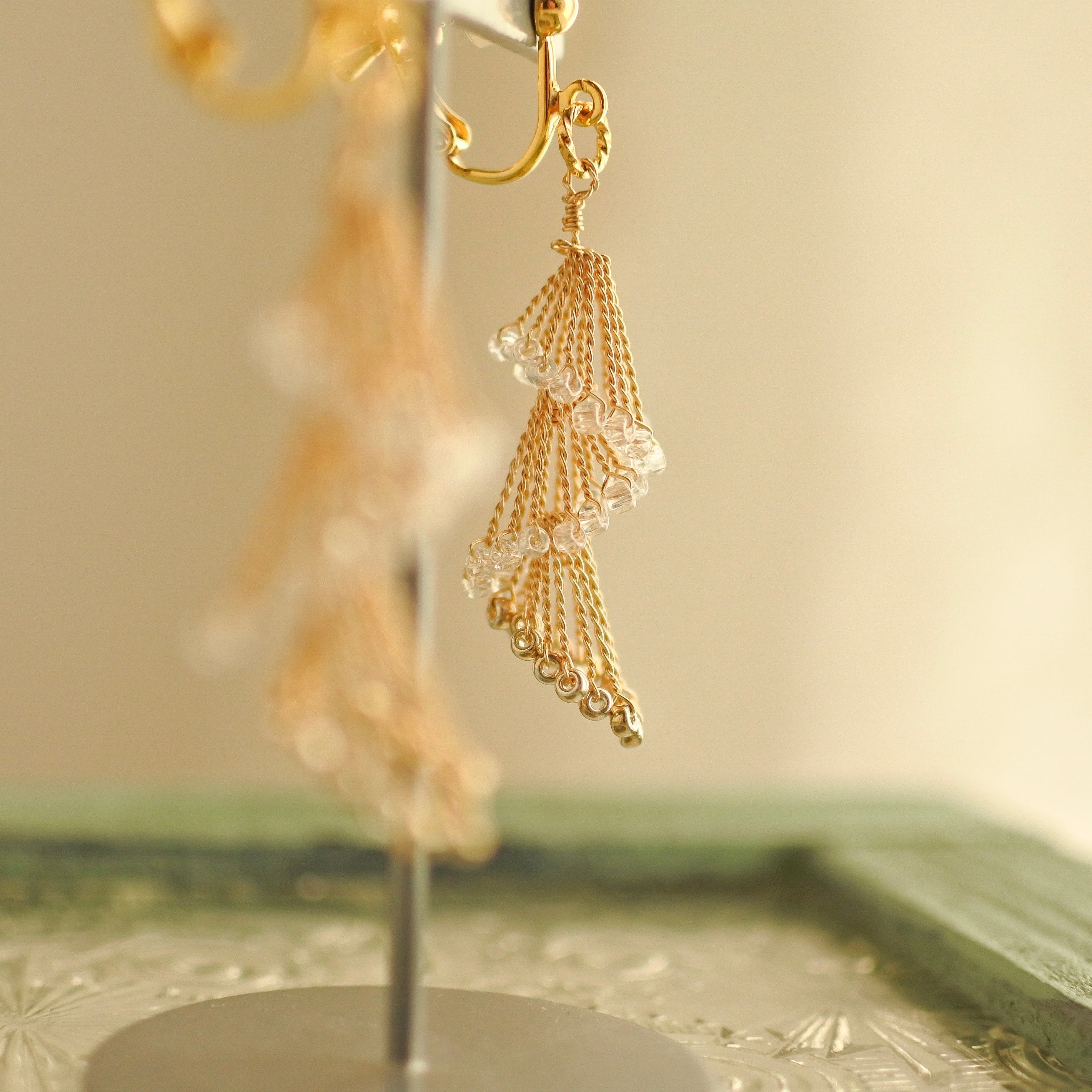 淡い輝きが重なり合い、揺れるたびに洗練された余韻を残します。