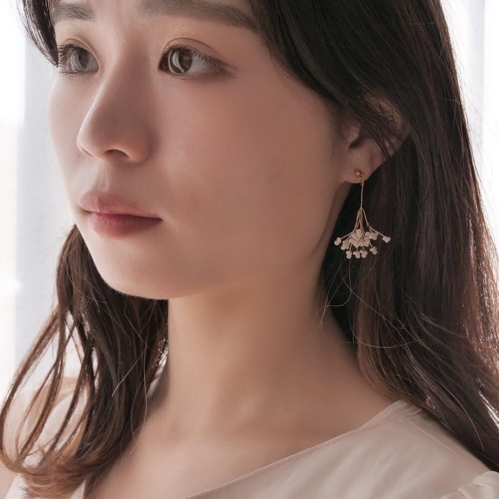 ワイヤーアクセサリー 小枝アクセサリー 小枝耳飾り 小枝ピアス 小枝イヤリング ウェディング 華奢 かすみ草