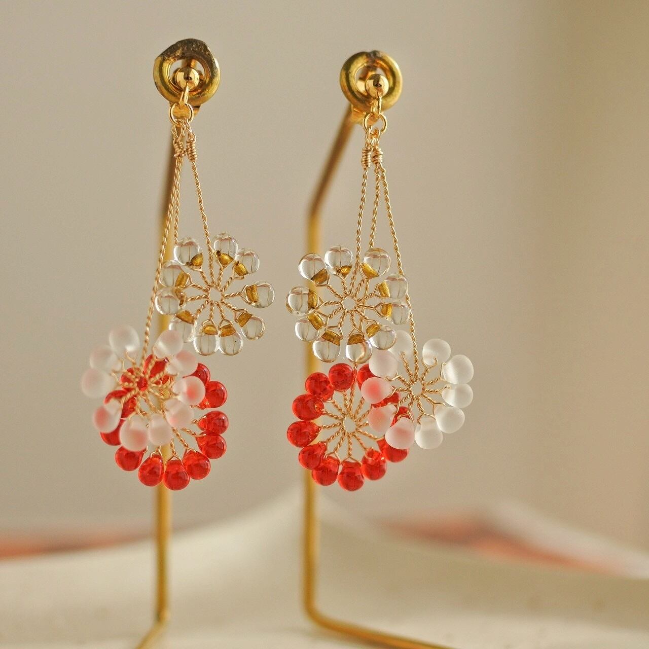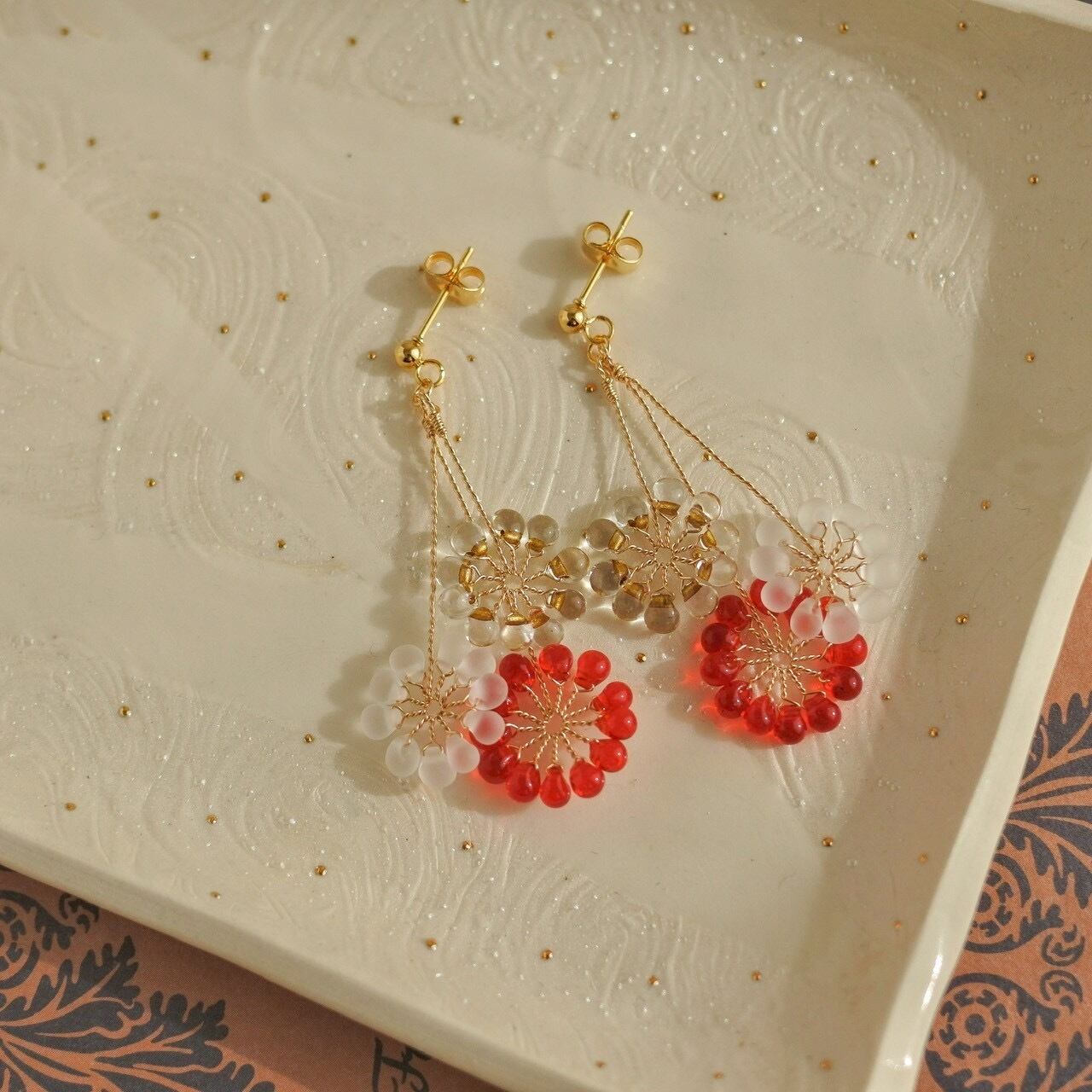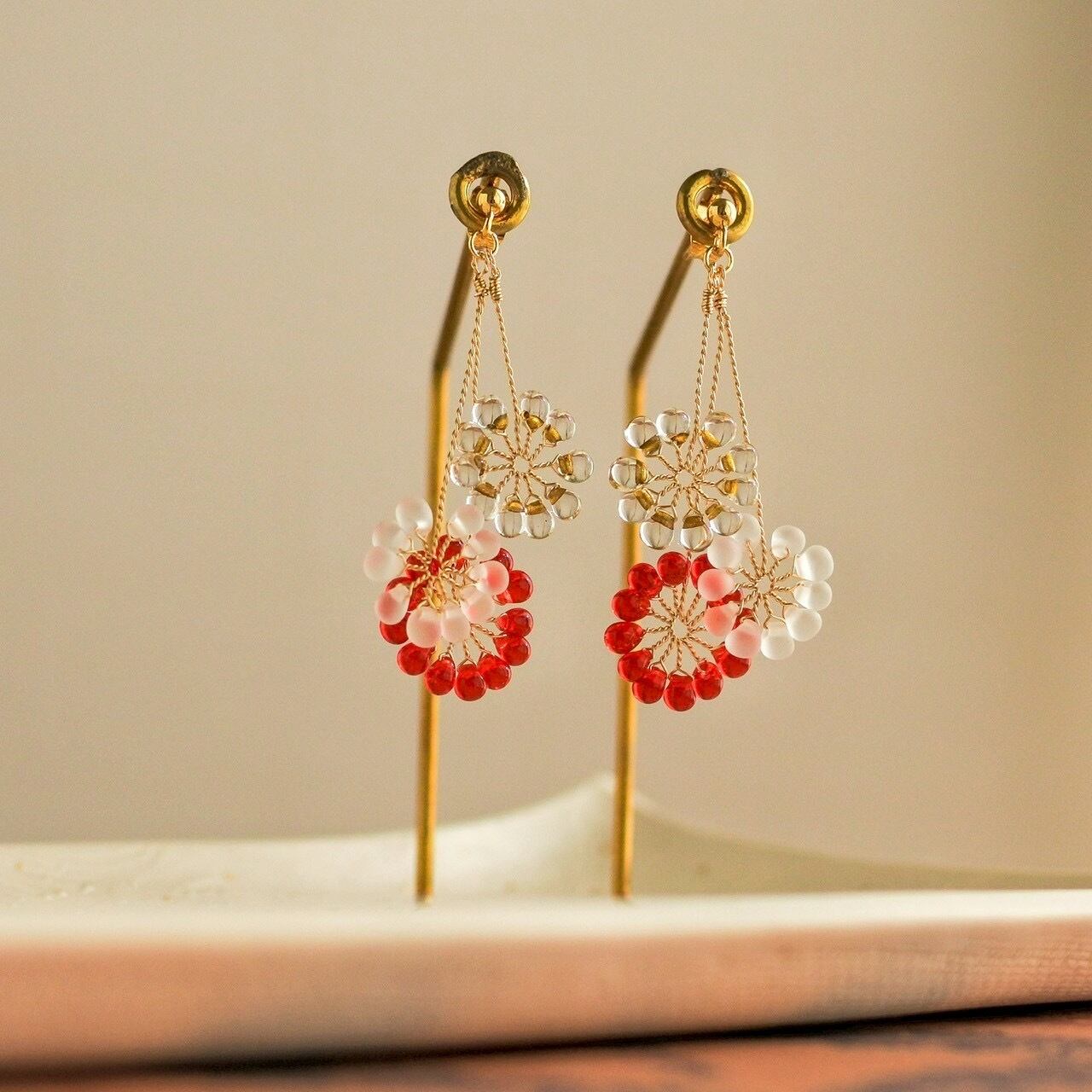 1,2月限定カラー 「ざくろシリーズ」花火さん 小枝耳飾り ワイヤーアクセサリー