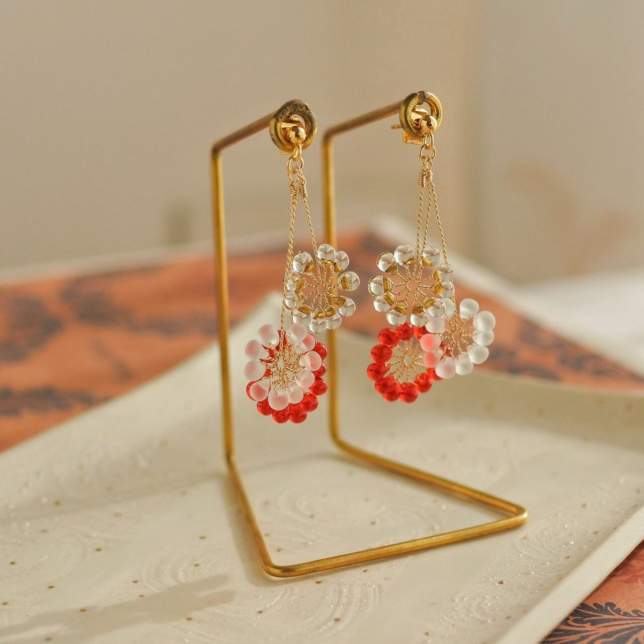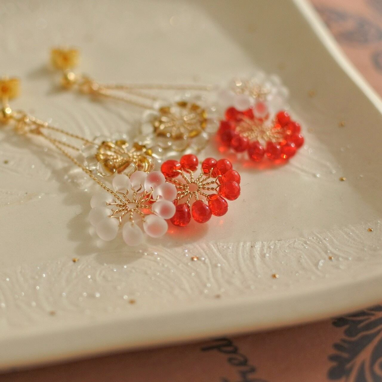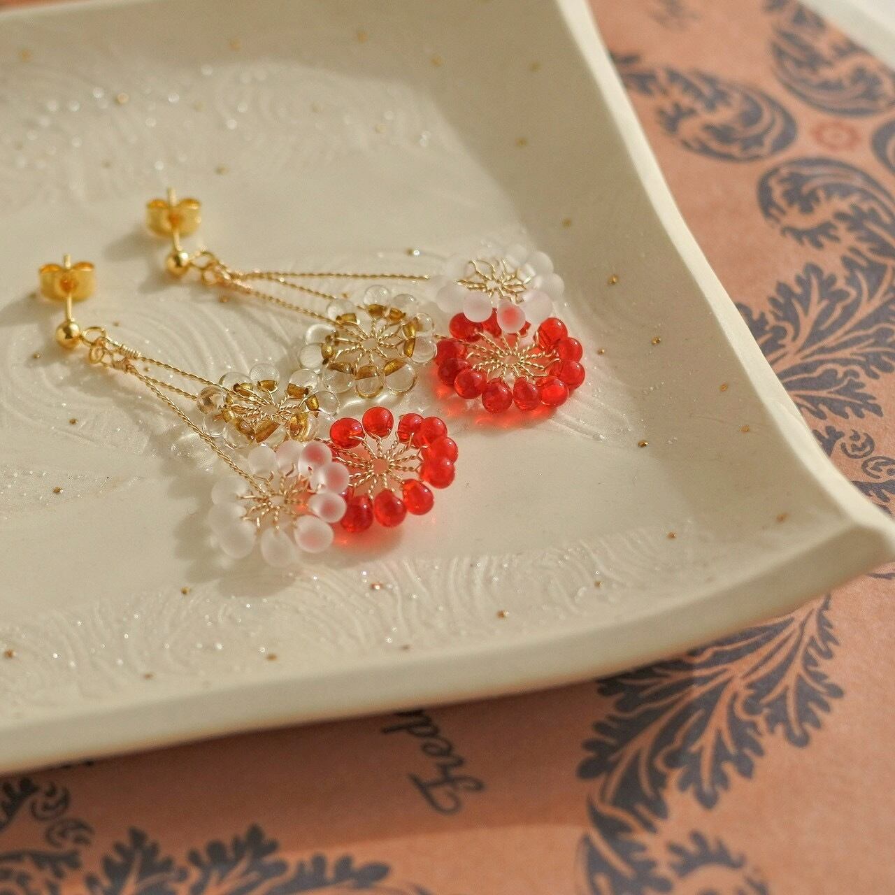 1,2月限定カラー 「ざくろシリーズ」花火さん 小枝耳飾り ワイヤーアクセサリー