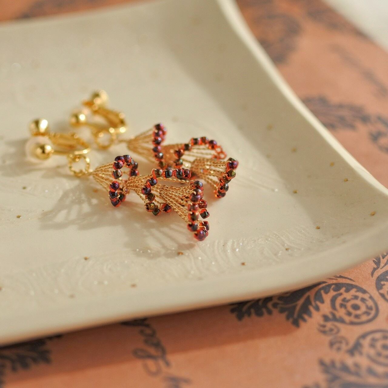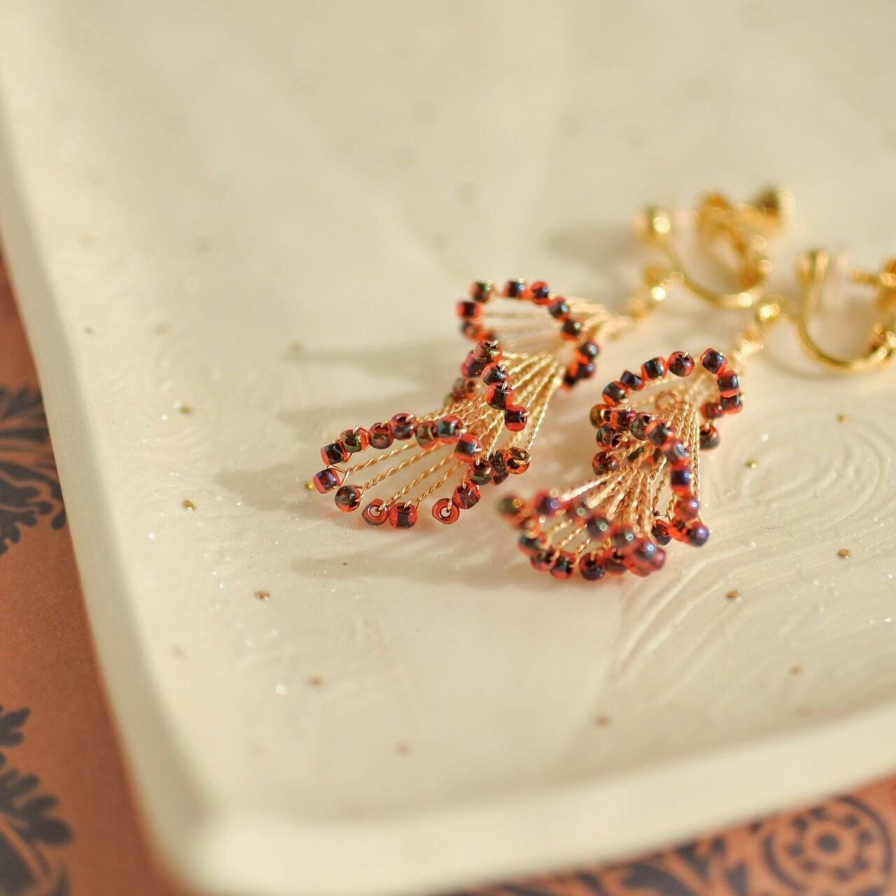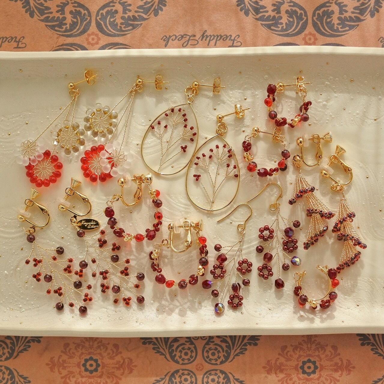 1,2月限定カラー「ざくろシリーズ」律の風(りちのかぜ)小枝耳飾り ワイヤーアクセサリー