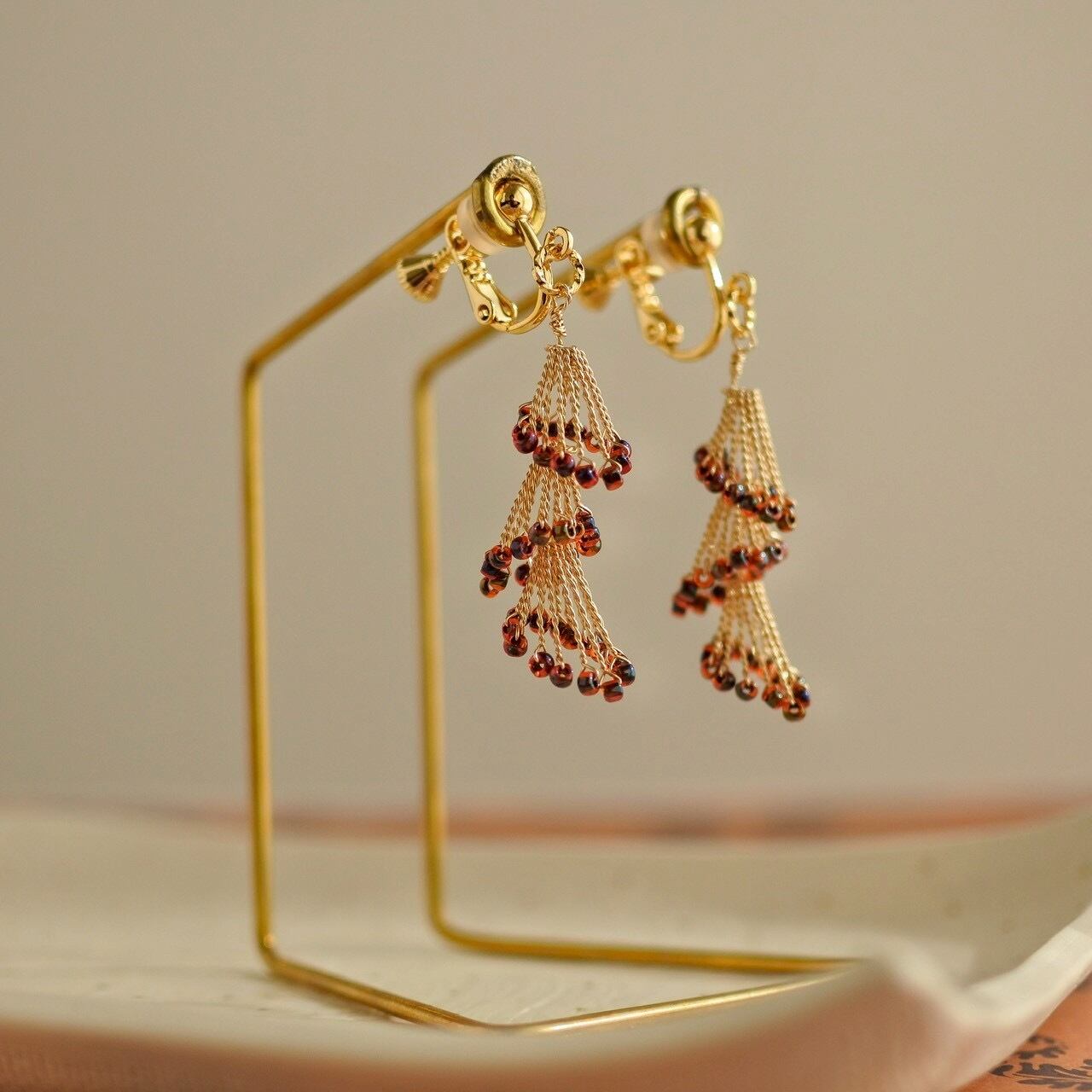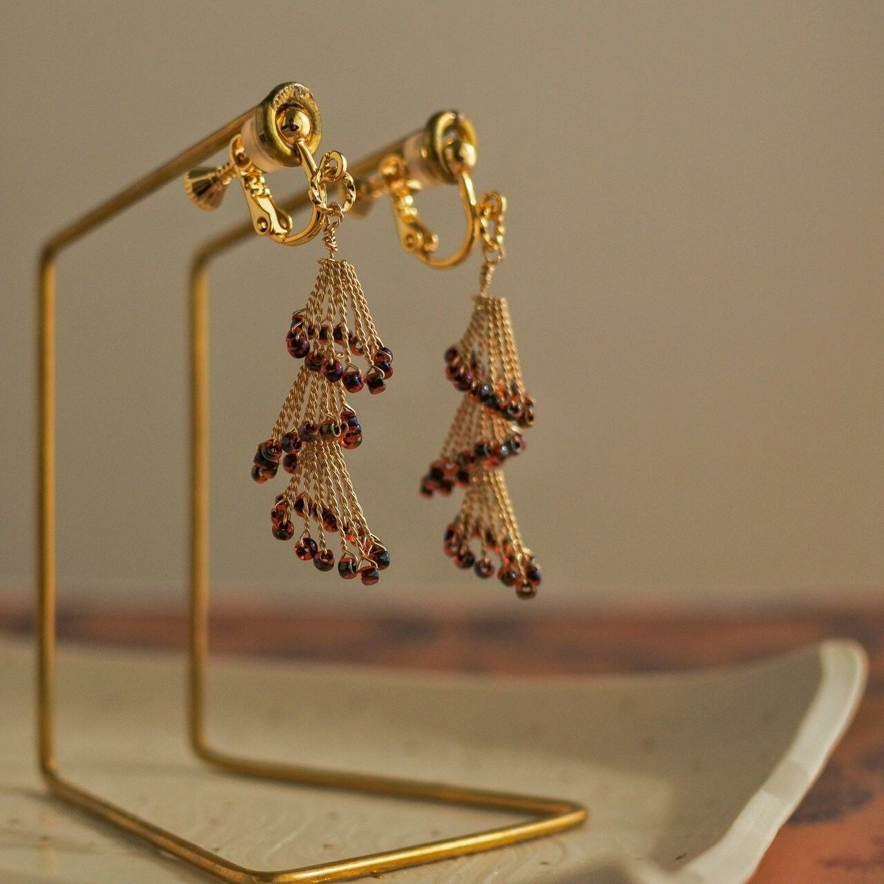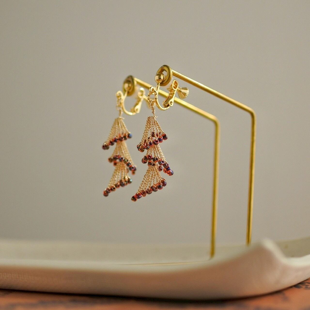 1,2月限定カラー「ざくろシリーズ」律の風(りちのかぜ)小枝耳飾り ワイヤーアクセサリー