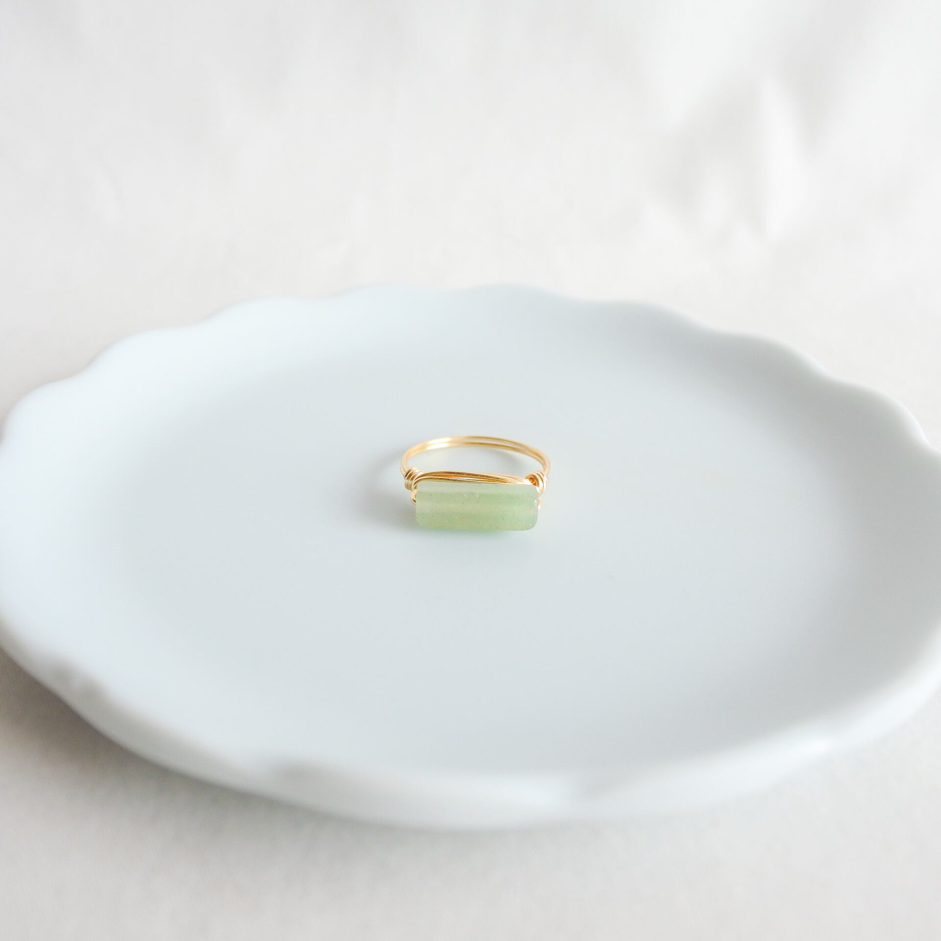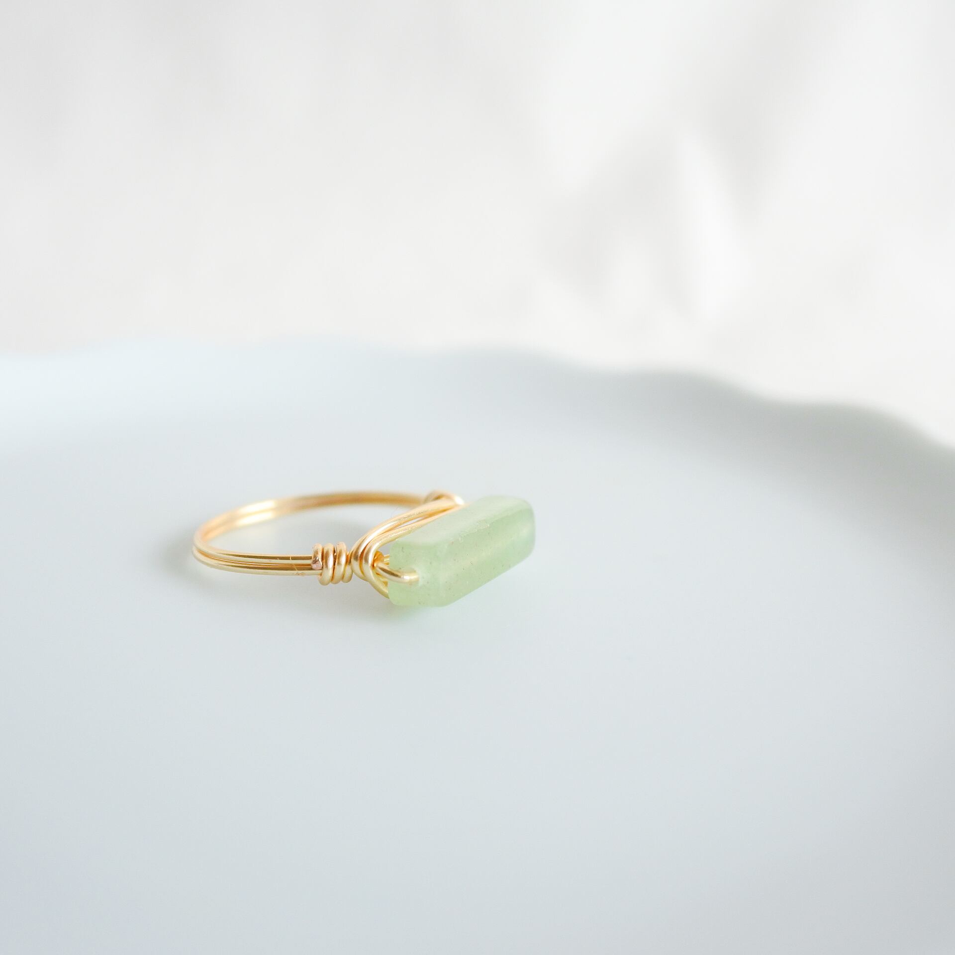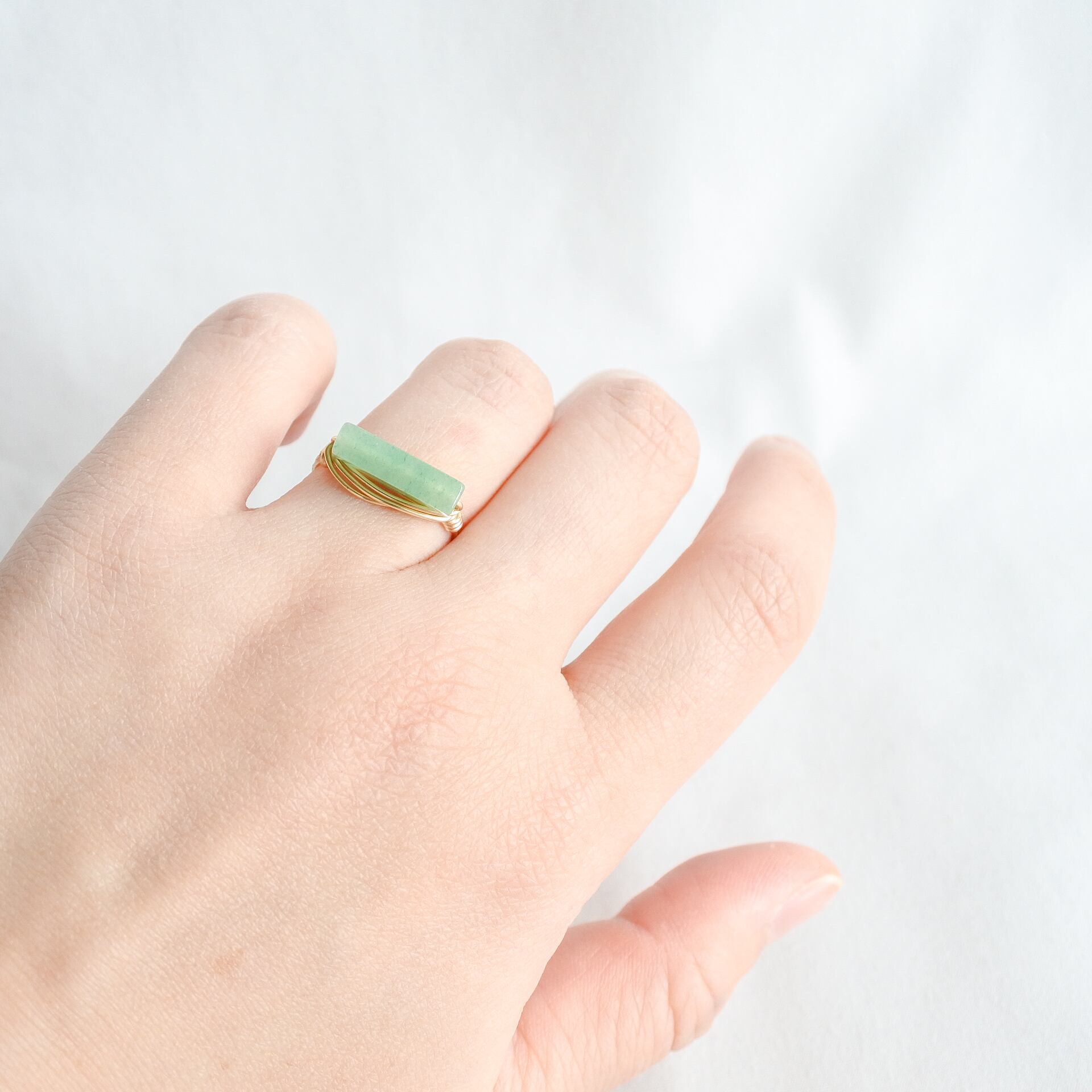 グリーンアベンチュリン ほそながい ゴールドの指輪
